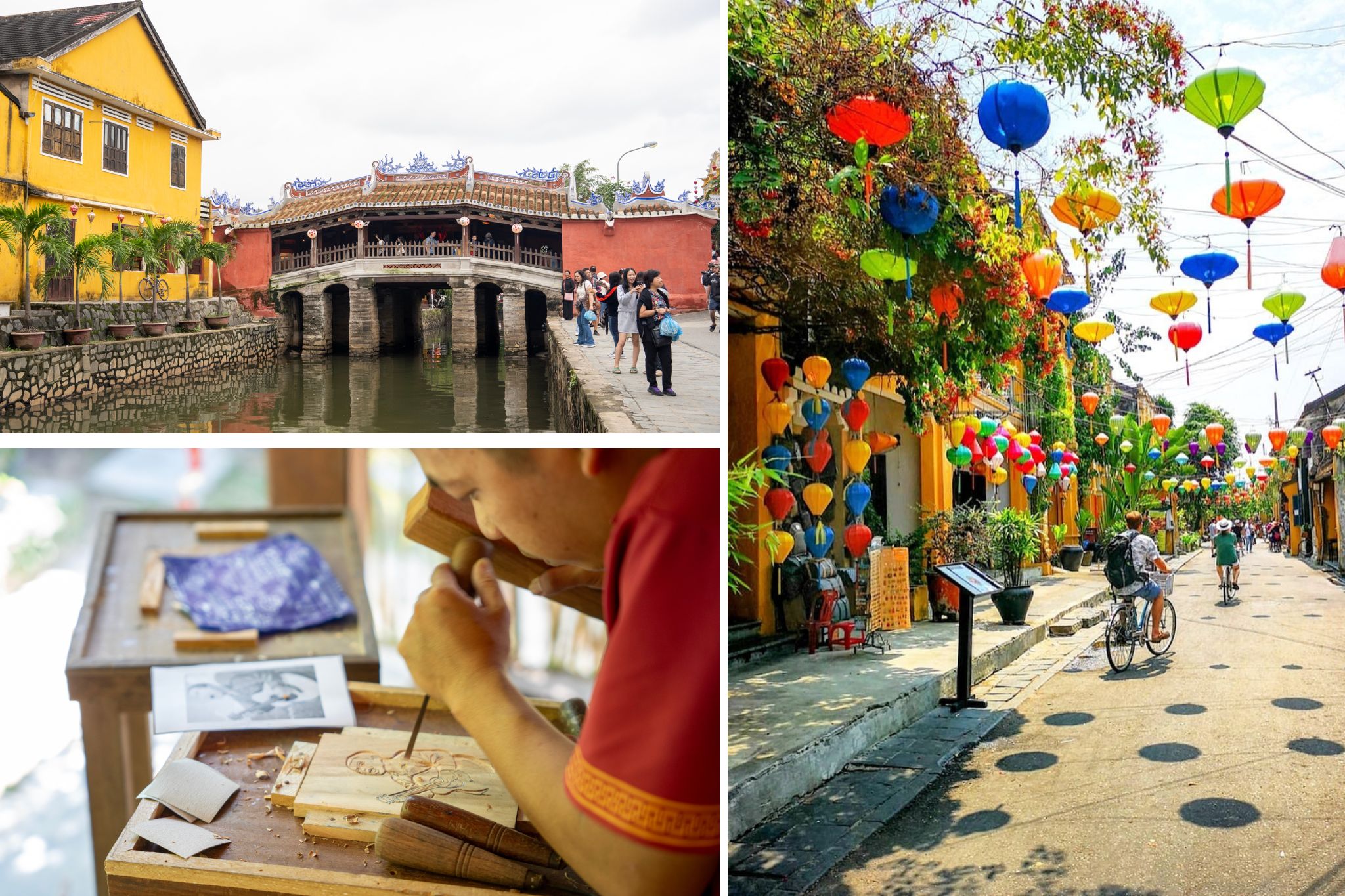 Your journey culminates at the iconic Japanese Covered Bridge, a symbol of Hoi An's diverse heritage. Built over 400 years ago, this graceful bridge once connected the town's Japanese and Chinese communities. Admire the intricate carvings and paintings within, as your guide deciphers their symbolism and cultural significance.