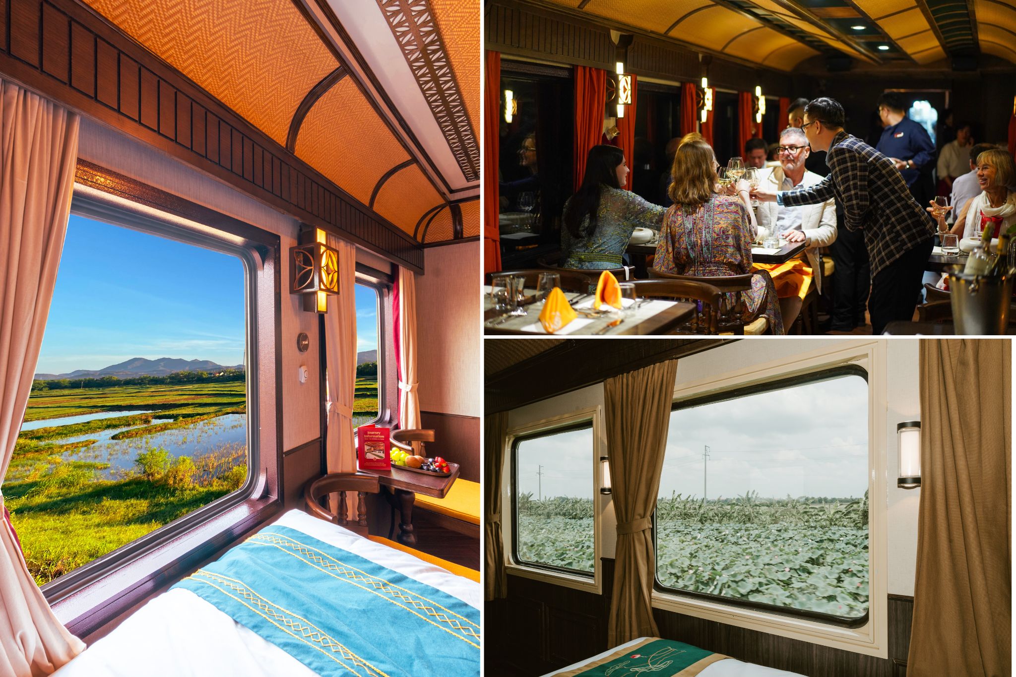 More than a journey, this is an ode to Vietnam’s timeless beauty – a moving postcard capturing the soul of the country from South to North. As the train gently winds its way along the coastline, every turn of the track unveils a new masterpiece: golden sunlight shimmering over tranquil waters, fishermen casting nets in rhythm with the tide, and the scent of tropical breeze mingling with the aroma of freshly brewed coffee. Each destination along the route – Ho Chi Minh City, Hoi An, and Hanoi – tells its own story of culture, elegance, and heritage. Whether you are savoring a glass of fine wine in the panoramic lounge or gazing out at the ever-changing landscapes, every moment aboard this luxury train is a celebration of discovery, tranquility, and the enduring charm of Vietnam.